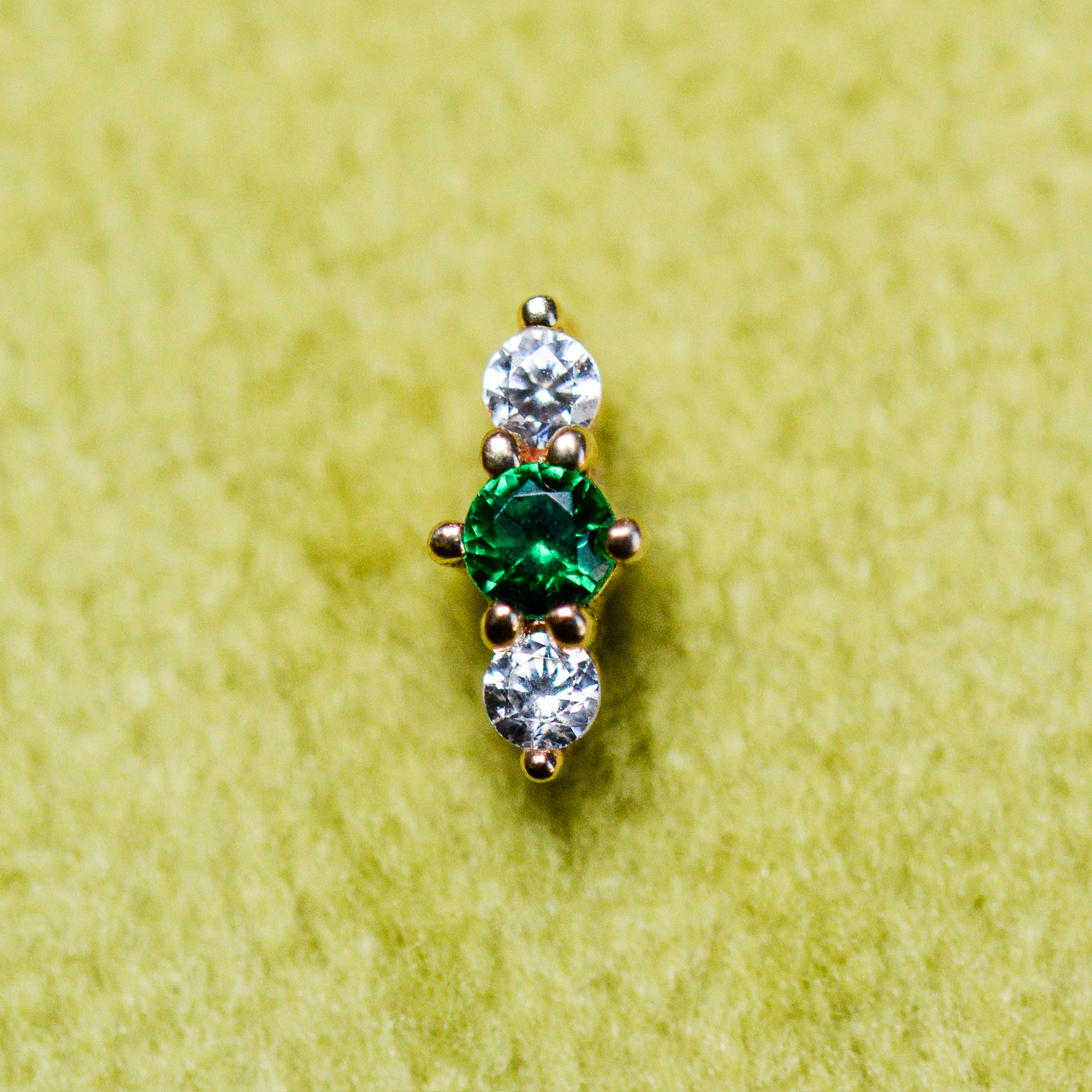 Give main character energy with our 14K Emerald Teardrop Stud, made with round-cut crystals on each side. Crafted with precision, this stunning piece screams sophistication and charm. The vibrant emerald at its center captures attention, while the sparkling crystals add a touch of glamour. Elevate your ear mapping journey with this versatile stud, perfect for any occasion or piercing placement.