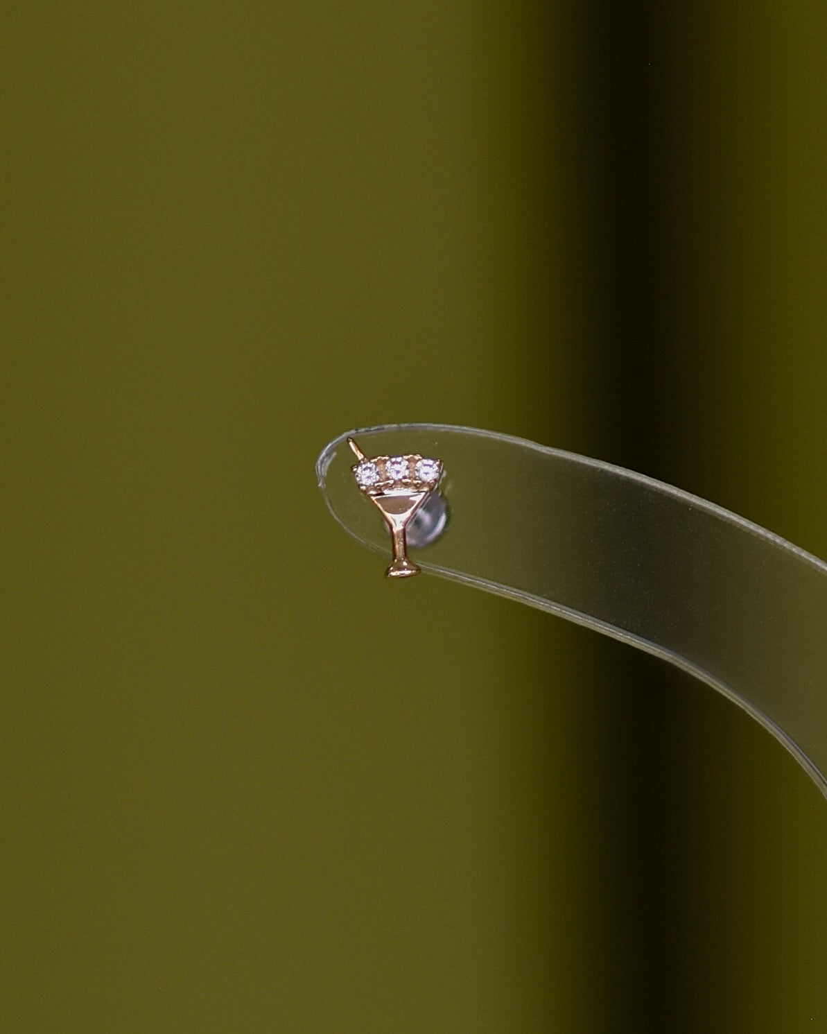 The threadless design ensures a secure and comfortable fit, ideal for any ear placement from helix to lobe. Perfect for everyday wear or a special occasion, the 14K Martini Stud is your go-to for effortless, refined glamour.