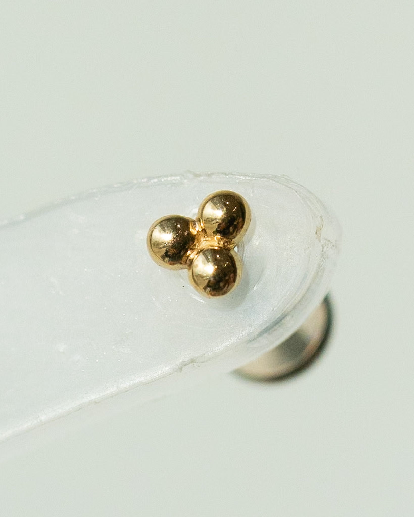 It has three little gold balls stacked up, like a tiny triangle. It's an easy way to make your ear look special for any day or any party.