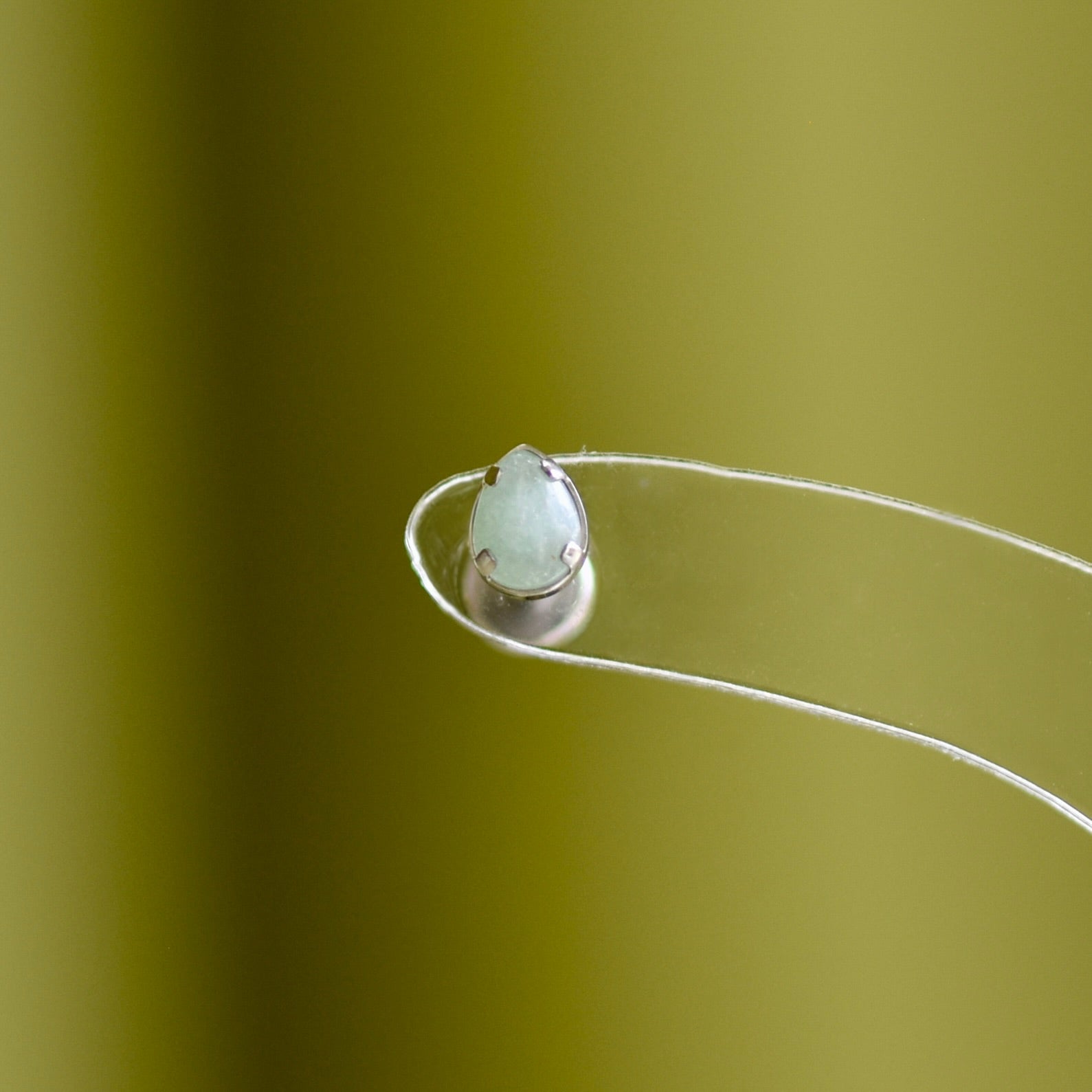 A smooth green jade cabochon is set in a sleek titanium bezel, highlighting the stone’s rich color and natural translucency. The modern, minimalist design contrasts the jade’s organic beauty with titanium’s cool, matte finish.