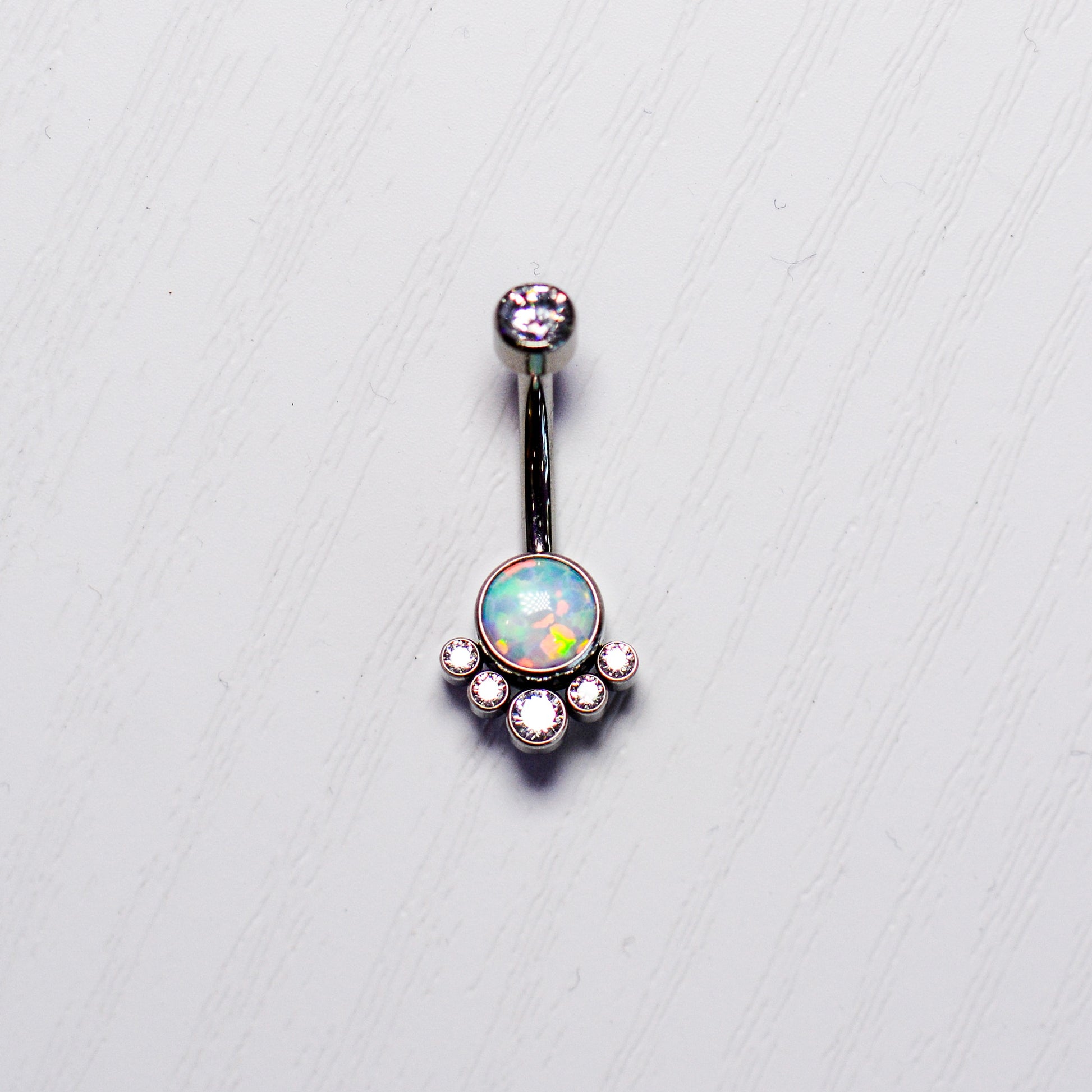 Captivating and ethereal our Isla opal adds a touch of mystical beauty to your belly button piercing. Made from implant grade titanium. Elevate your style with the unique allure of opal and experience the magic for yourself. Explore our collection and add a touch of sophistication to your look today. Size 14g.