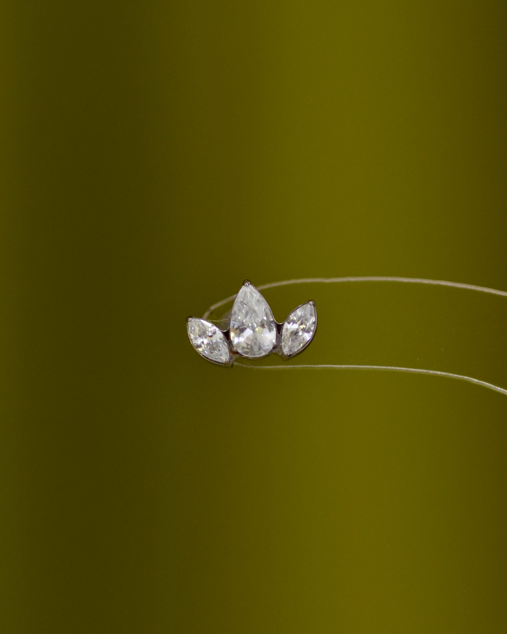 Timeless and elegant, the Marquise Trio Stud features three marquise-cut stones arranged in a classic fan shape. Crafted from implant-grade titanium, it’s safe for sensitive skin and built for lasting comfort. This understated yet polished design is a staple for any curated ear, offering just the right amount of sparkle in lobe, helix, or conch placements.